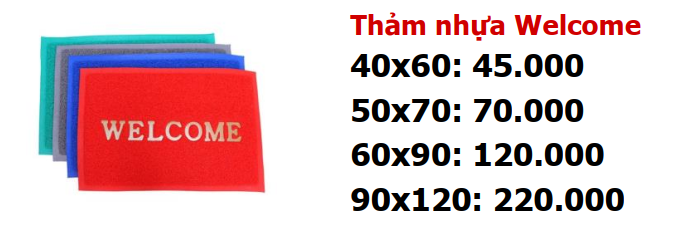 Thảm nhựa Welcome: 40×60-50×70-60×90-90×120